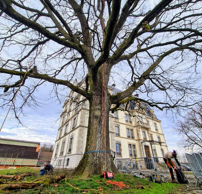 Haubanage statique ou dynamique, pensé pour la stabilité et la longévité de l'arbre, tout en garantissant la sécurité des personnes et des bien environnants.