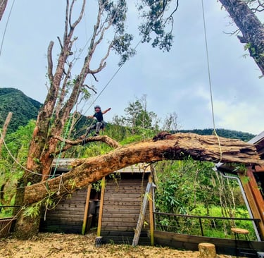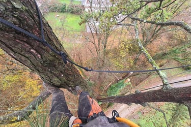 L’haubanage permet de sécuriser un arbre lorsque sa structure est fragilisée afin de le préserver tout en assurant la sécurité de ce qui l'entoure.