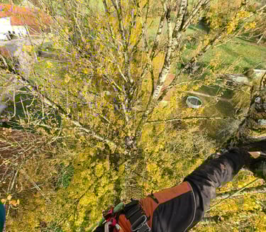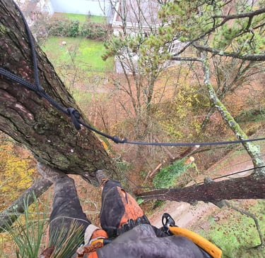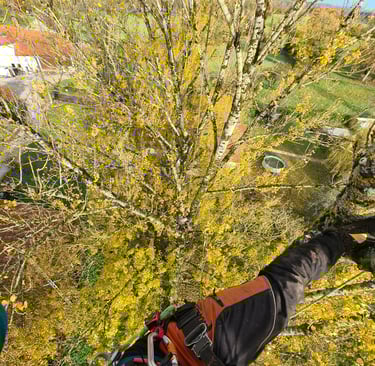Coupe propre et maîtrisée : nous coupons toujours au bon angle, au niveau de l'insertion de la branche, pour permettre une bonne cicatrisation et éviter au maximum les impacts sur le reste de l'arbre.