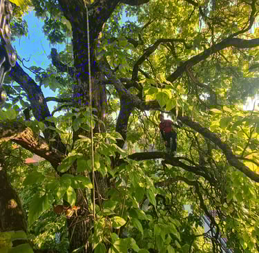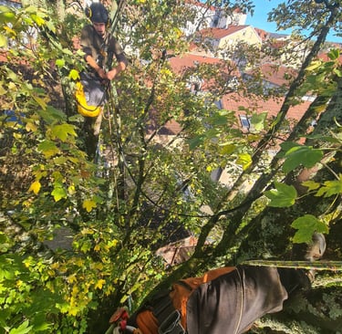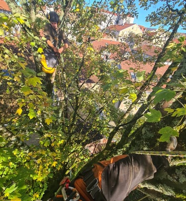 Choix du type de taille : allègement, relevé de couronne, réduction, taille de formation… toujours adaptée à la situation, l'état et la biologie de l'arbre, jamais de mutilations ni d’étêtage.
